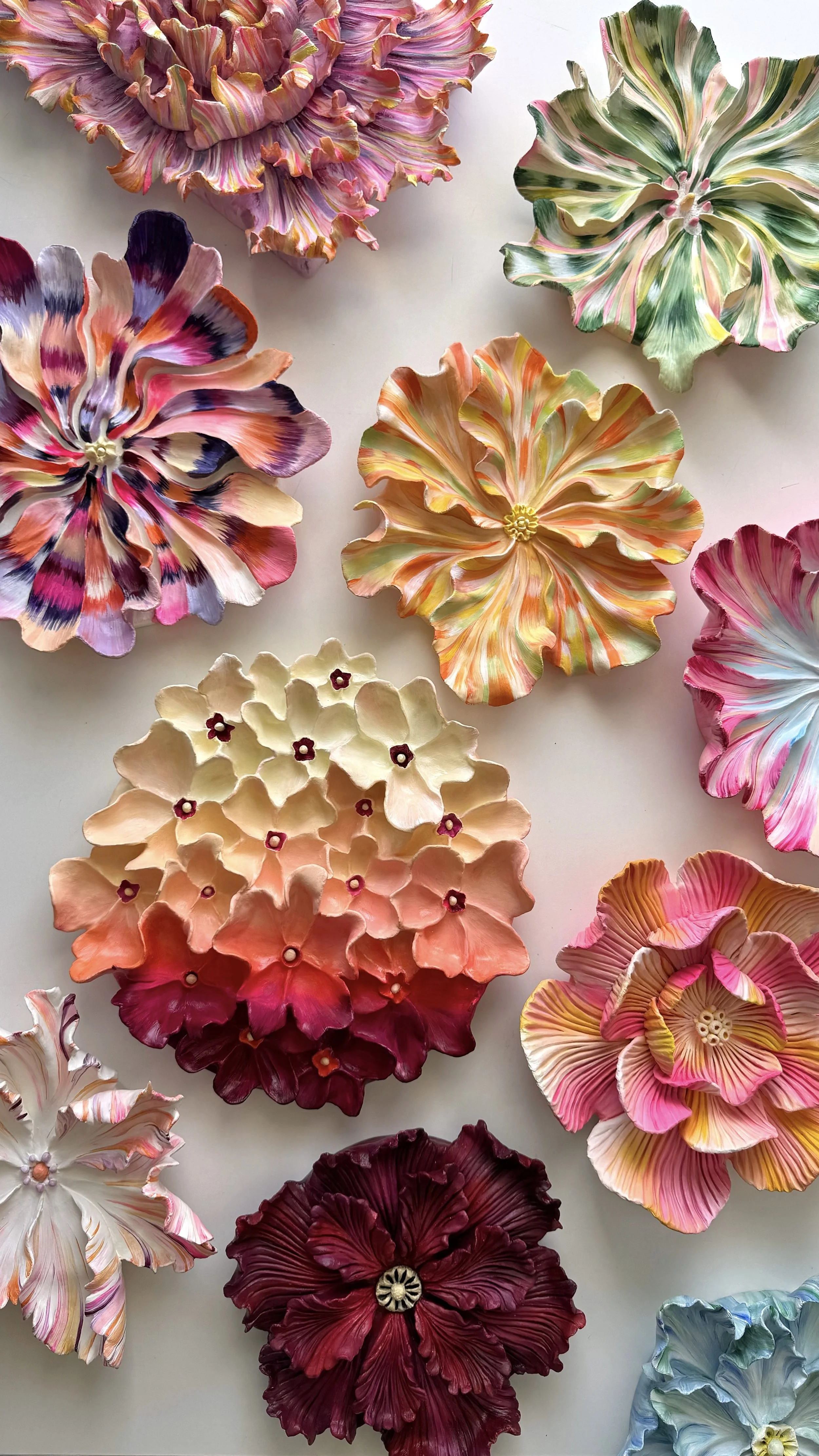 I create original, one-of-a-kind floral wall sculptures from scratch by hand. Each piece is a reflection of my deep connection with nature and its vibrant, intricate patterns.